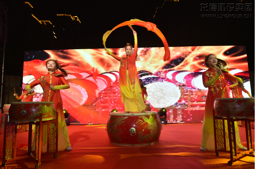 與舞臺遙遙相對的有一只巨型氣球月亮,十分漂亮。隨著主持人慷慨激昂的介紹詞和龍信紅色物業(yè)宣傳片的播放,晚會正式開始了。